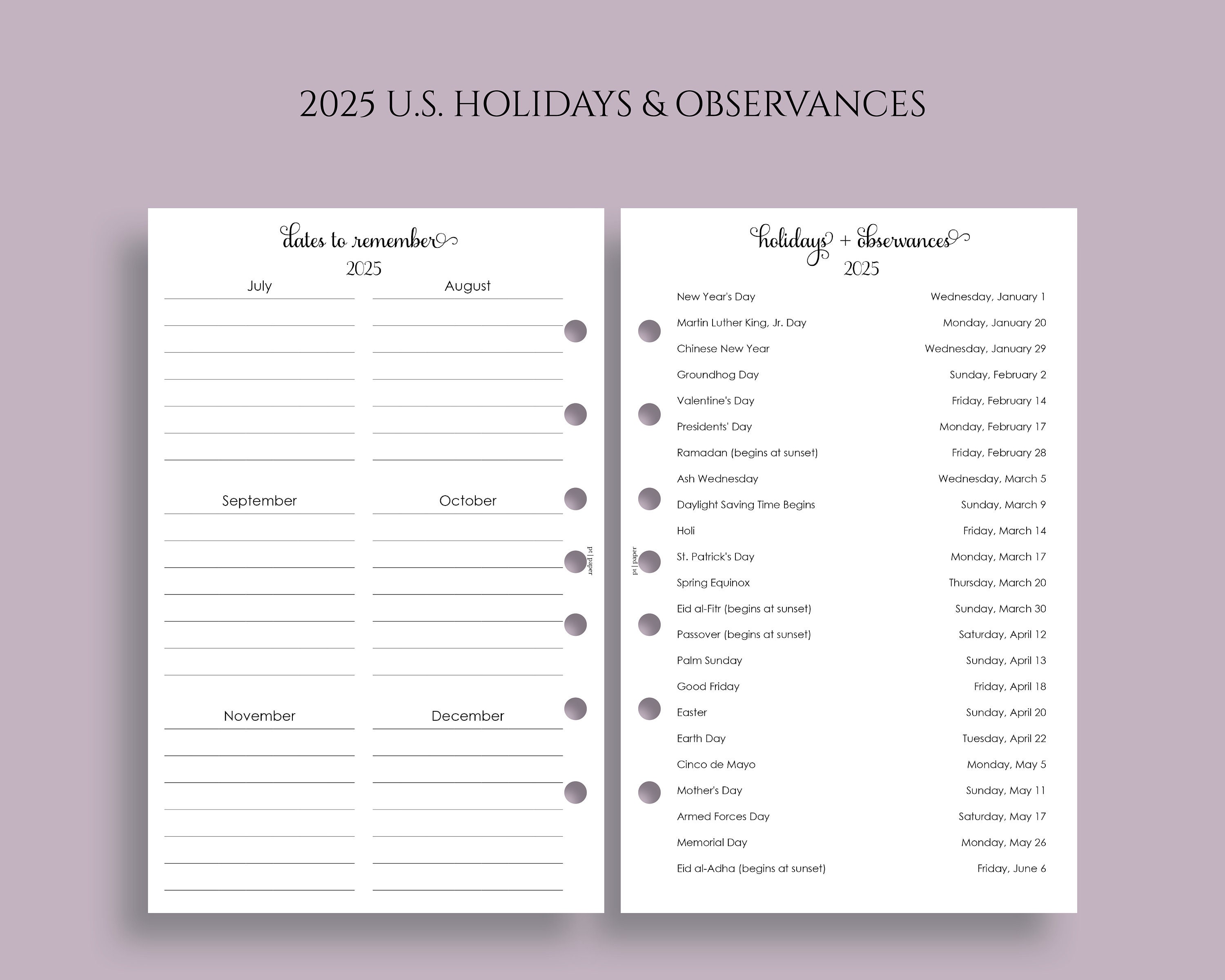 Source : www.ptpaper.comYearly Calendar Bundle, Year at a glance, Dates to Remember, U.S.