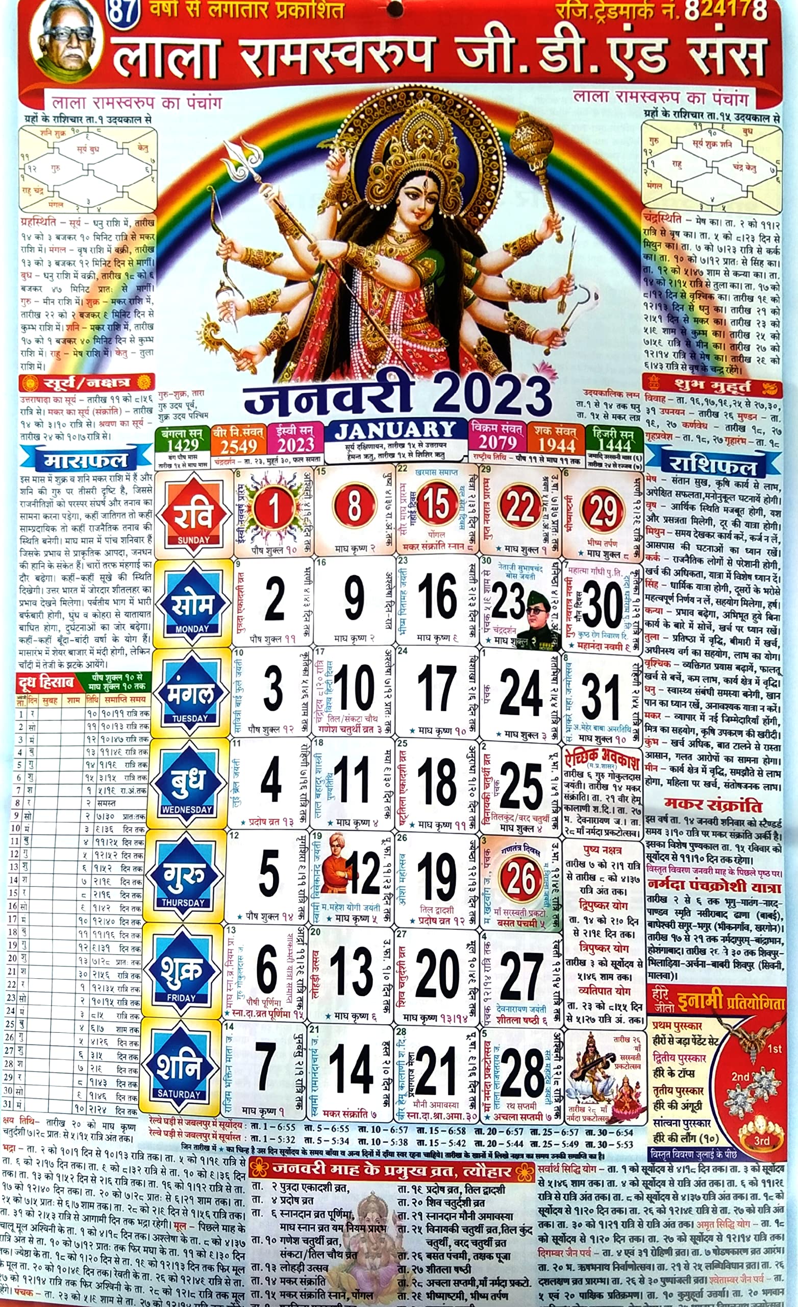Source : www.facebook.comLala Ramswaroop G.D. & Sons Panchang/Wall New Year Calendar 2023